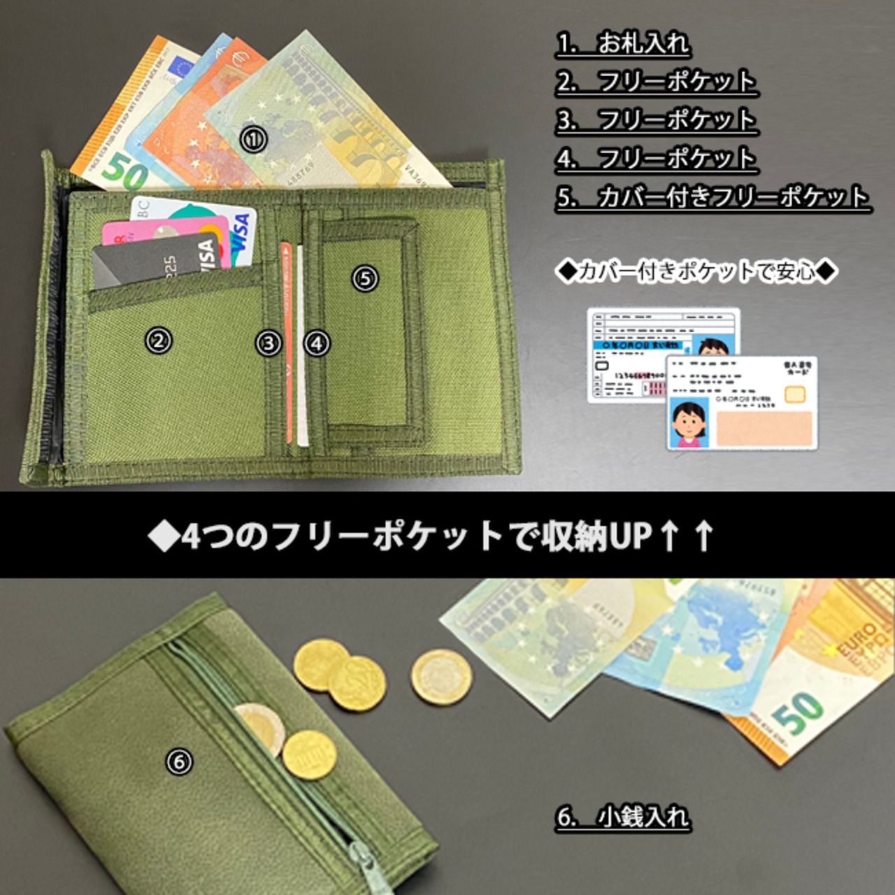 一つはカバー付きのフリーポケットなのでマイナンバーカードなどの収納にぴったりです♪