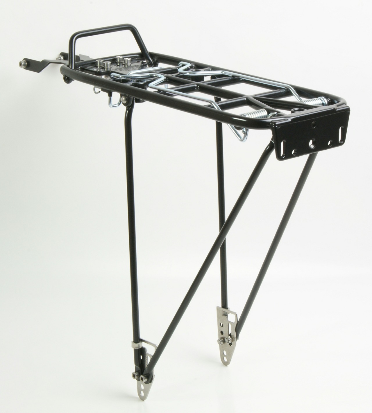 小物を簡単に固定できるスプリングクリップや、自転車を押す時や持ちあげる時に便利な手持ちハンドル、リフレクター等を装着できるバックプレートも付属しています。
