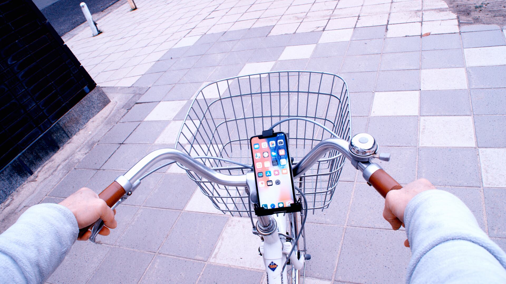 ・ハンドルとスマホルダーの角度が上向き30度以上になるように取り付けて下さい。角度が浅いと落下の危険性があります。