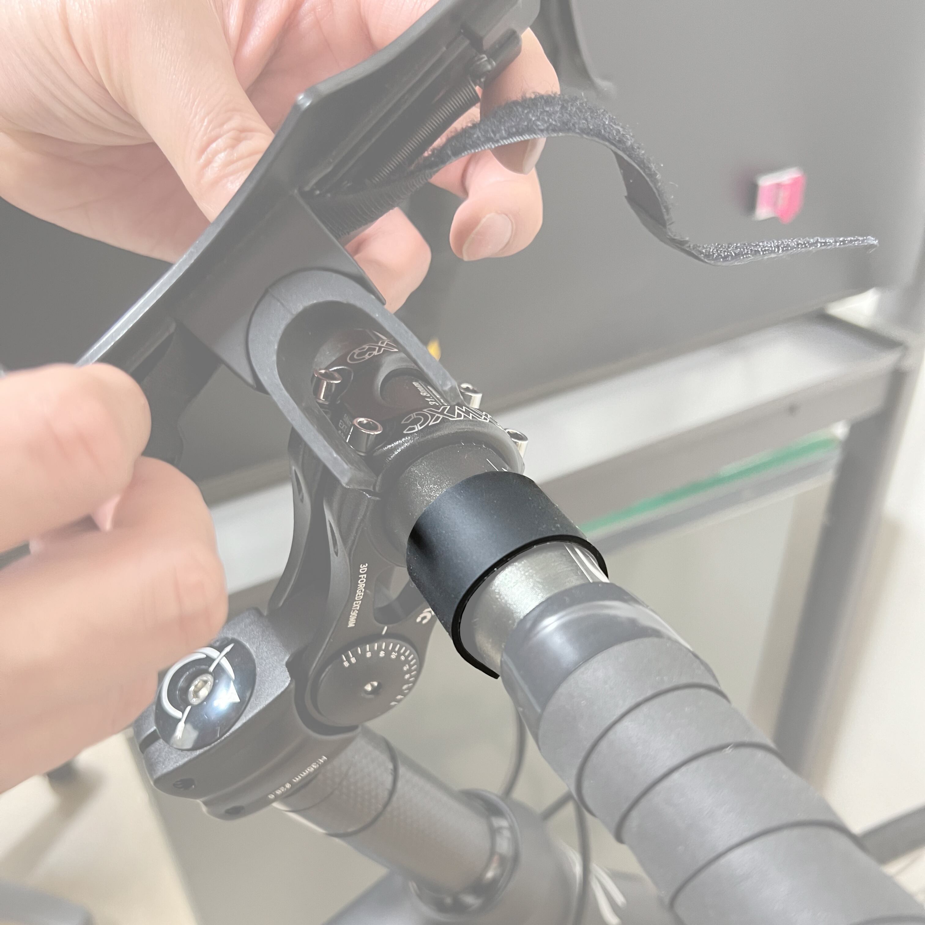 ハンドルバーの取付けたい場所にパッドを貼りその上からスマホルダーを装着するとズレにくくなります。
