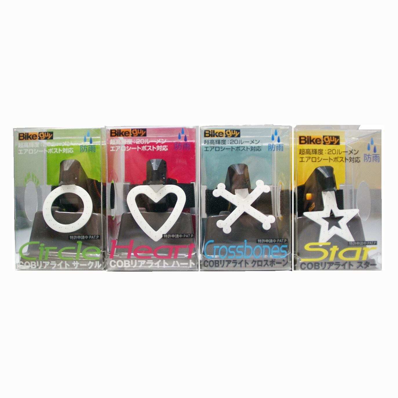 ユニークな形の高性能リアライトが登場!今回のライトはCOB LED(発光部)の形に赤く光るオリジナル商品で形は「サークル」「ハート」「クロスボーン」「スター」の4種類になります。イメージは上にある写真や動画の通りですが夜間点灯しても形がハッキリと認識でき遊び心を持たせつつ視認性も高いライトになっています。DE ROSA(デ・ローザ)の車体とCOBリアライト ハートなどの様に車体やアクセサリーとコーディネイトするのも楽しみの1つです^^ しかもエアロシートポストにも取付られる様にベルクロバンドを長・短の2種類付属しています。この機会に是非お試しください!