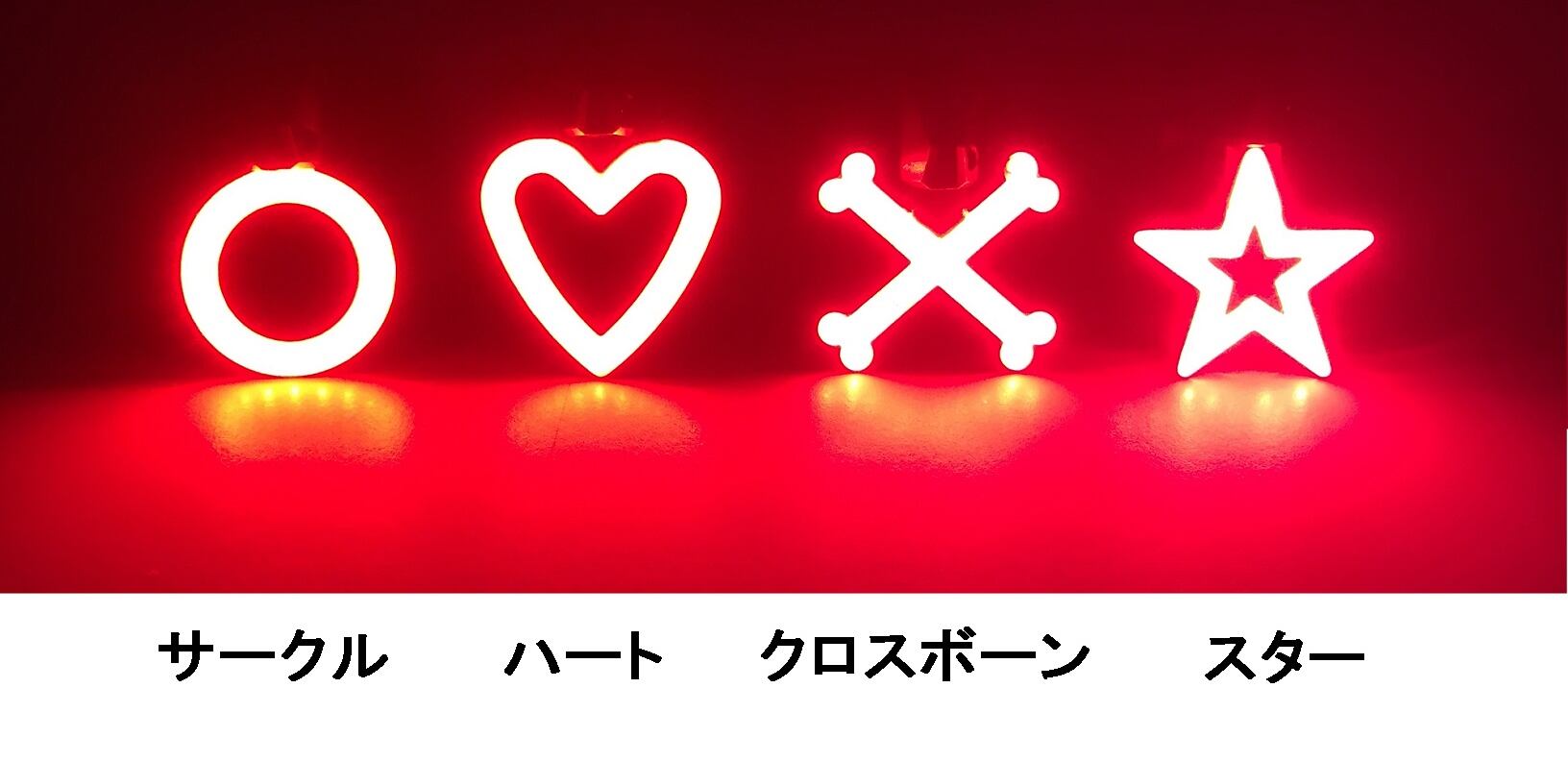 ・サークル、ハート、クロスボーン、スターの4種類 [形がはっきり分かる発光]
