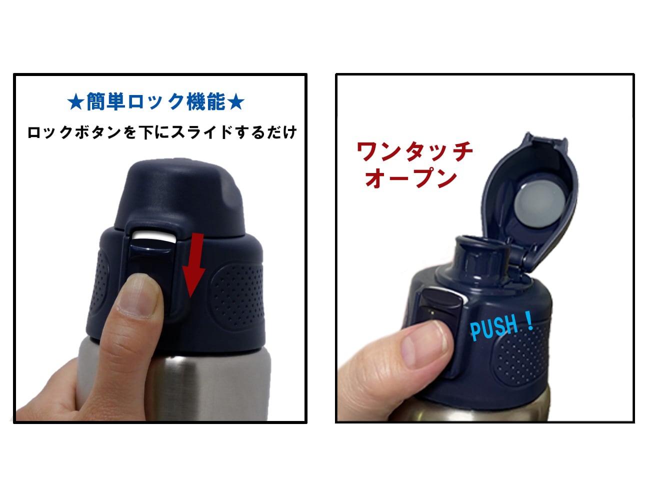 密閉性が高いため、氷の使用時などは気圧差によりプッシュボタンを押してもキャップが開かなくなる場合があります。その場合は、一度手でキャップを開くと、以降はプッシュボタンで開きます。