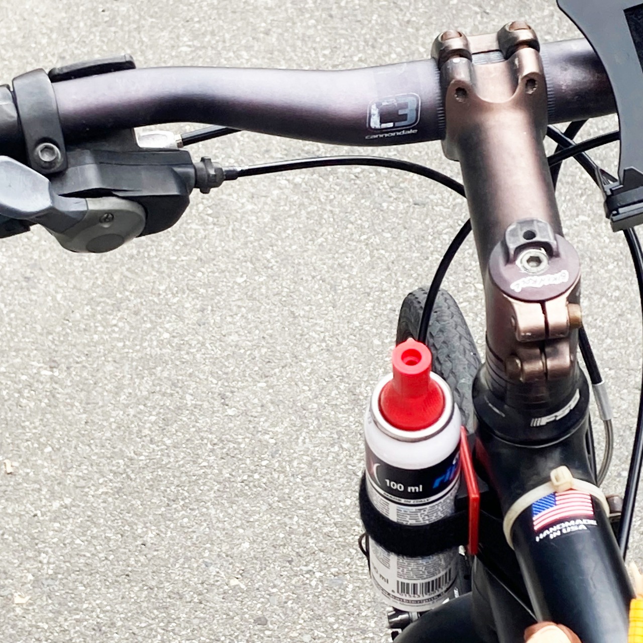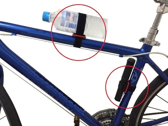 パイプ状のものに巻き付けるだけなので、自転車だけでなくPCラックやデスクの脚など様々なところに取り付け可能。自転車に携帯ポンプや折り畳み傘などを取り付けるもよし、懐中電灯をダイニングテーブルの脚などに取り付けておけば停電時にさっと取れるなど使い方は自由自在。