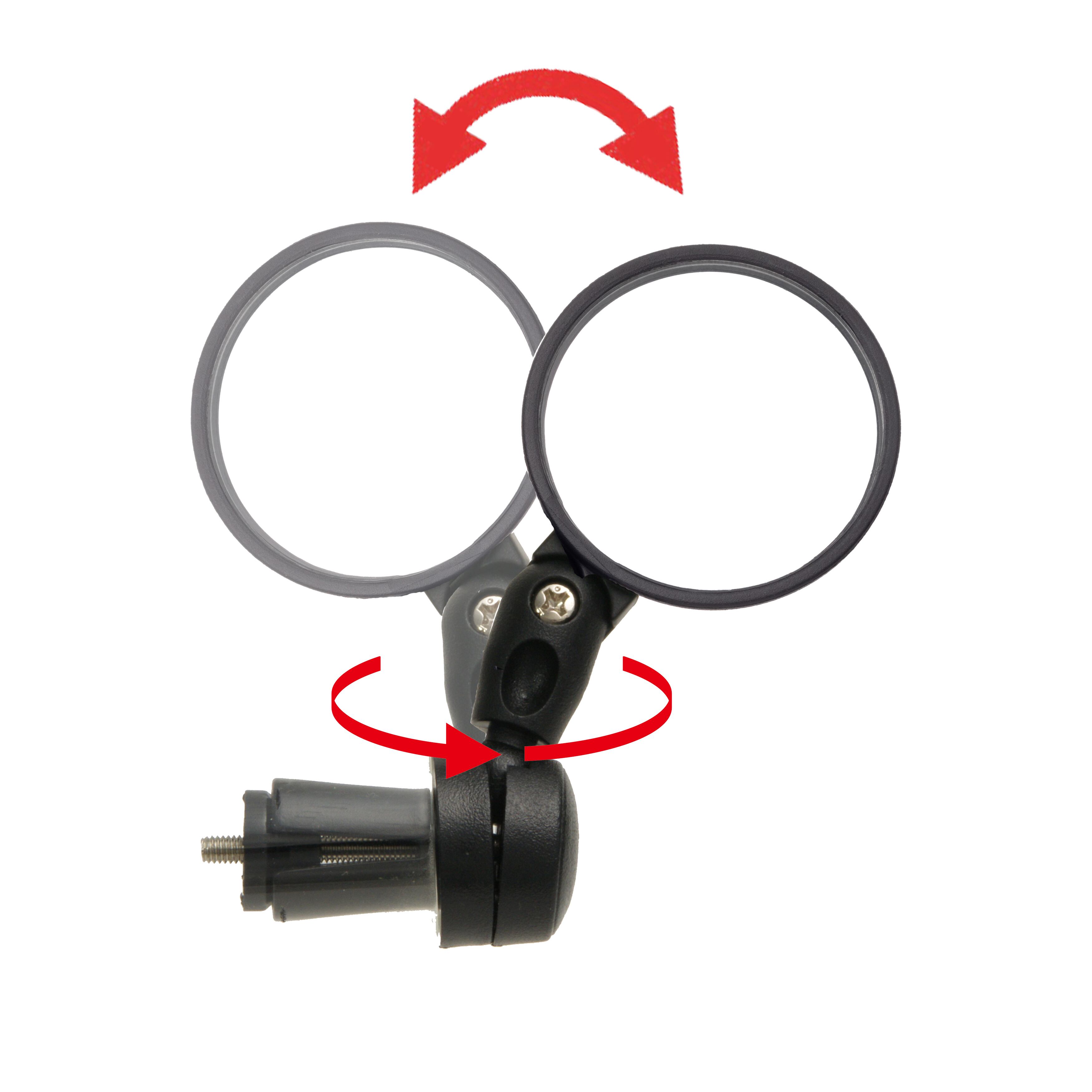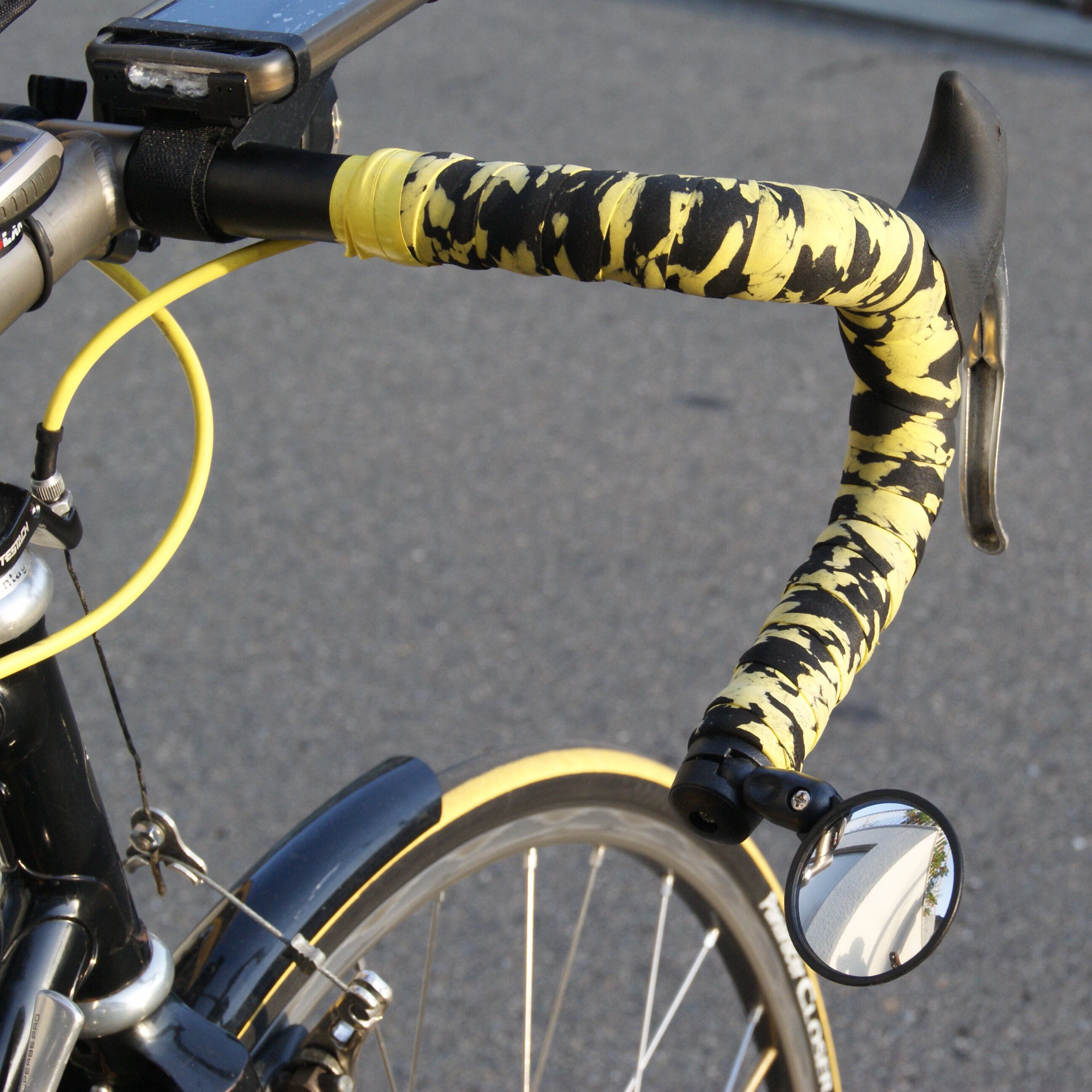 バックミラーを車体の内側に装着すると体が写り込みやすくなりますが、この商品はハンドルバーの端に装着するため後方が視認しやすく、自転車の操作も妨げません。また、フラット、ドロップどちらのハンドルバーでも装着可能で、2つの関節で自由に角度調整が可能です。