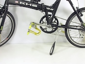 世界有数の自転車ショー、ユーロバイクで「EUROBIKE AWARD」を受賞したファッショナブルセンタースタンド。 ESGE(エスゲ)は、メイド・イン・スイスの高品質なスタンドをリリースするPLETSCHER社のスタンドに冠されたブランド。この『ズーム』は曲線と穴あけを組み合わせた優美なデザインでハイグレードバイクになじみ、あなたの愛車の魅力を効果的に引き立てるアクセサリーになります。 脚部は調整可能で、24~28インチ車に対応。ボトムブラケット位置の高いスポーツ用小径車なら、24インチ未満でも装着できるものもあります。弊社テストでは20インチ車でも取付けできるものがありました(画像参照)。 標準添付の傘型プレートにより多くの車種に対応しますが、オプションのU型プレートの追加や、菱形プレートとの交換も可能です。オプションの20mmボルトを使用すれば、センタースタンド用台座のある自転車にも装着できます。